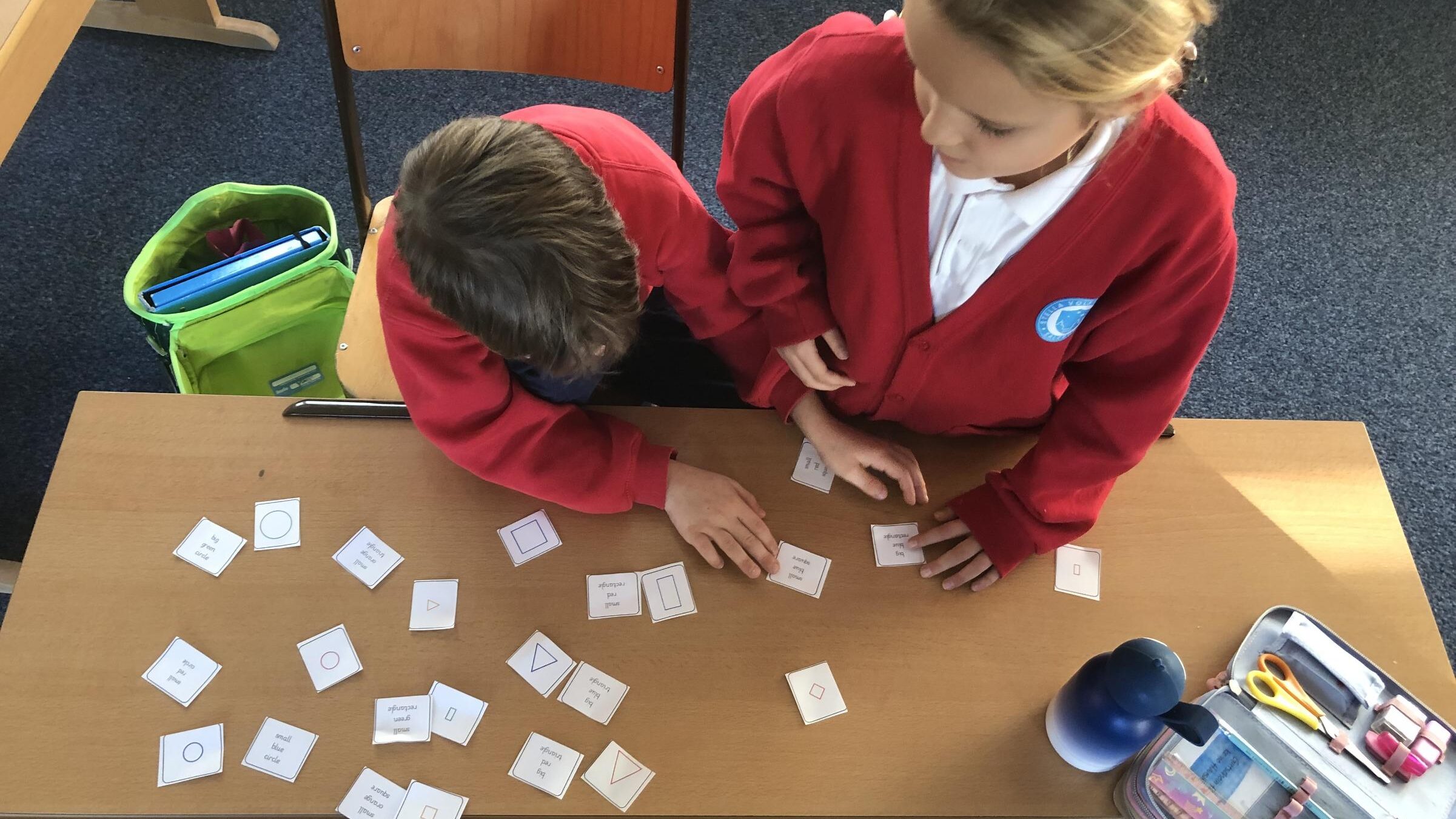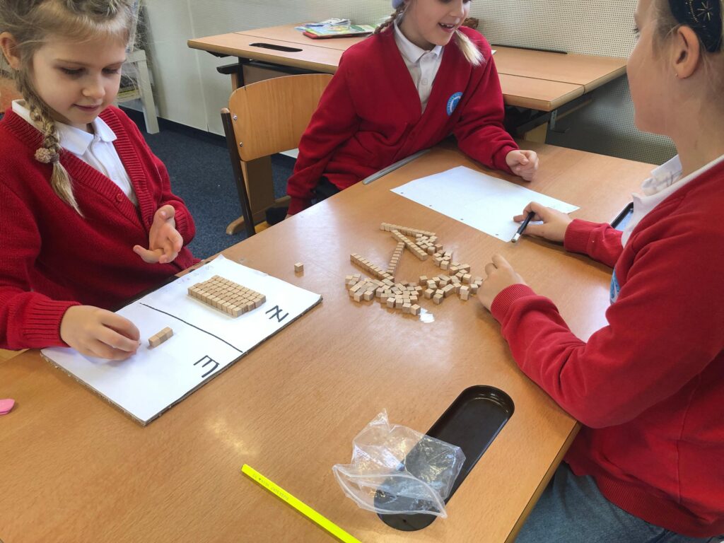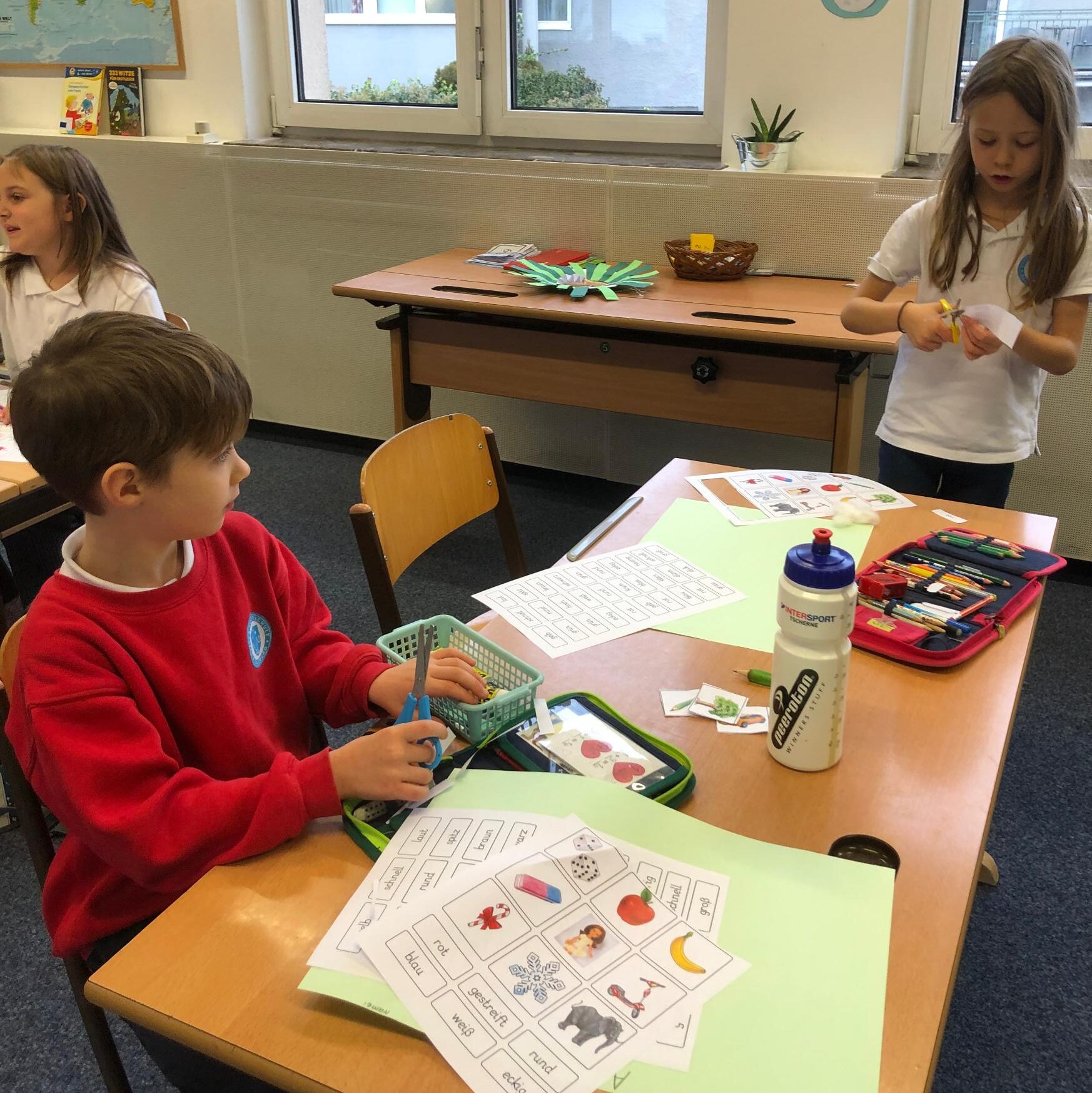 Die 2. Klasse, die vollständig anwesend war, lernte in Mathematik geometrische Formen auf Englisch. Zusätzlich arbeiteten und übten wir weiter im Zahlenraum bis 100.