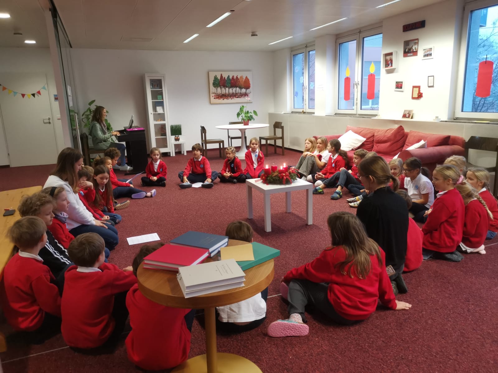 Wir haben außerdem mit einer neuen Tradition begonnen: Jeden Montag in der ersten Stunde trafen sich alle Klassen im Foyer, um gemeinsam eine Kerze am Adventkranz zu entzünden, ein kleines Gebet zu sprechen, Lieder zu singen und zu musizieren. Eine Stimmung, die dann den ganzen Tag anhielt.