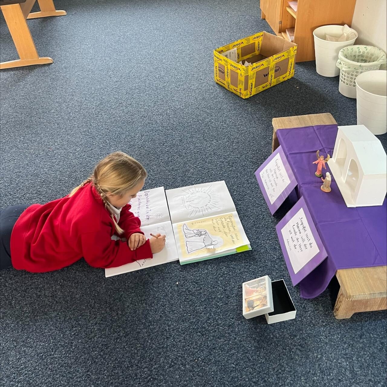 Im Religionsunterricht bereiteten wir uns mithilfe der Katechese des Guten Hirten auf Weihnachten vor und nahmen uns Zeit für die entsprechenden Bibeltexte.