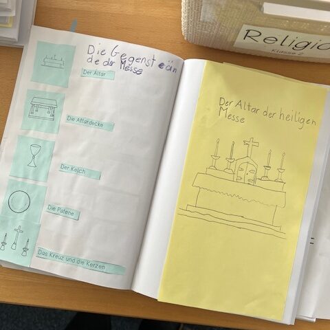 Im Religionsunterricht lernte die 2. Klasse die liturgischen Farben sowie die Feste im Kirchenjahr kennen. Das neue Thema ist die Heilige Messe.