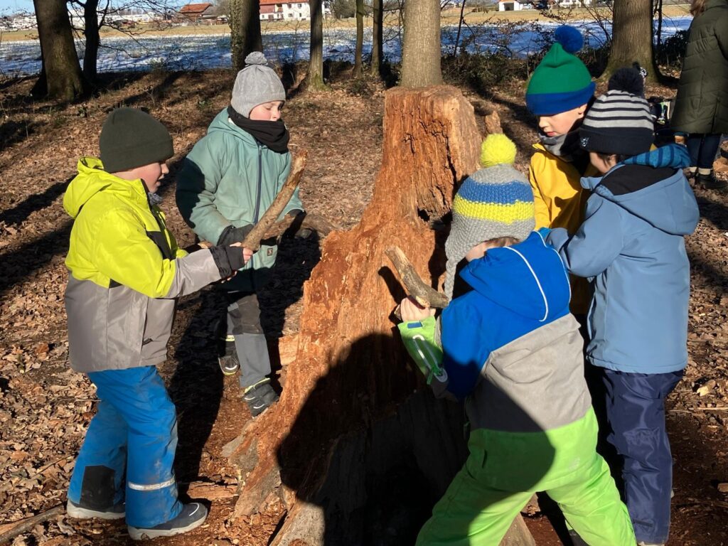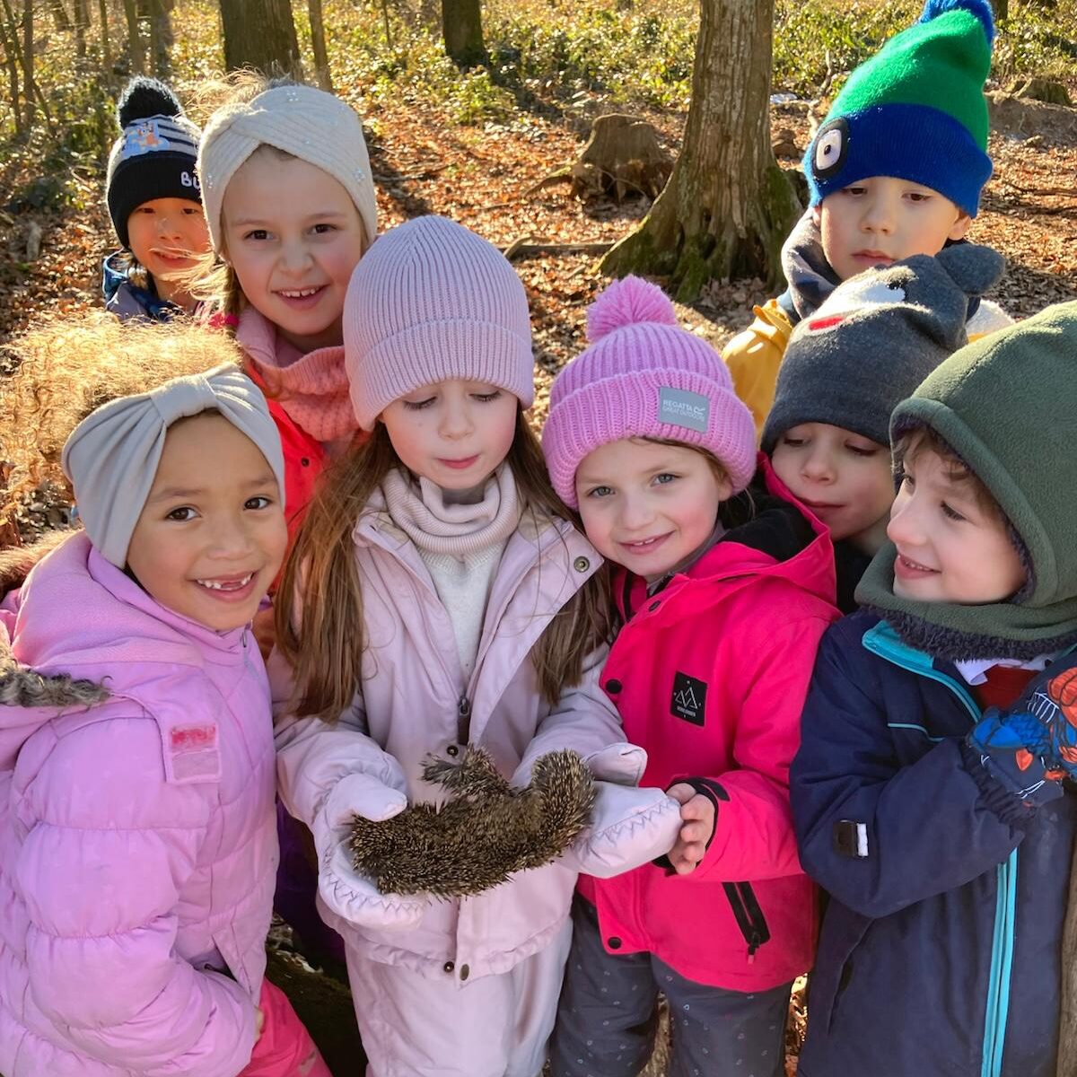 Auch die wöchentlichen Waldtage waren wieder voller Freude und spannender Entdeckungen. Die kleinen Detektive fanden das „Stachelkleid“ eines Igels, das mit großer Faszination untersucht wurde.