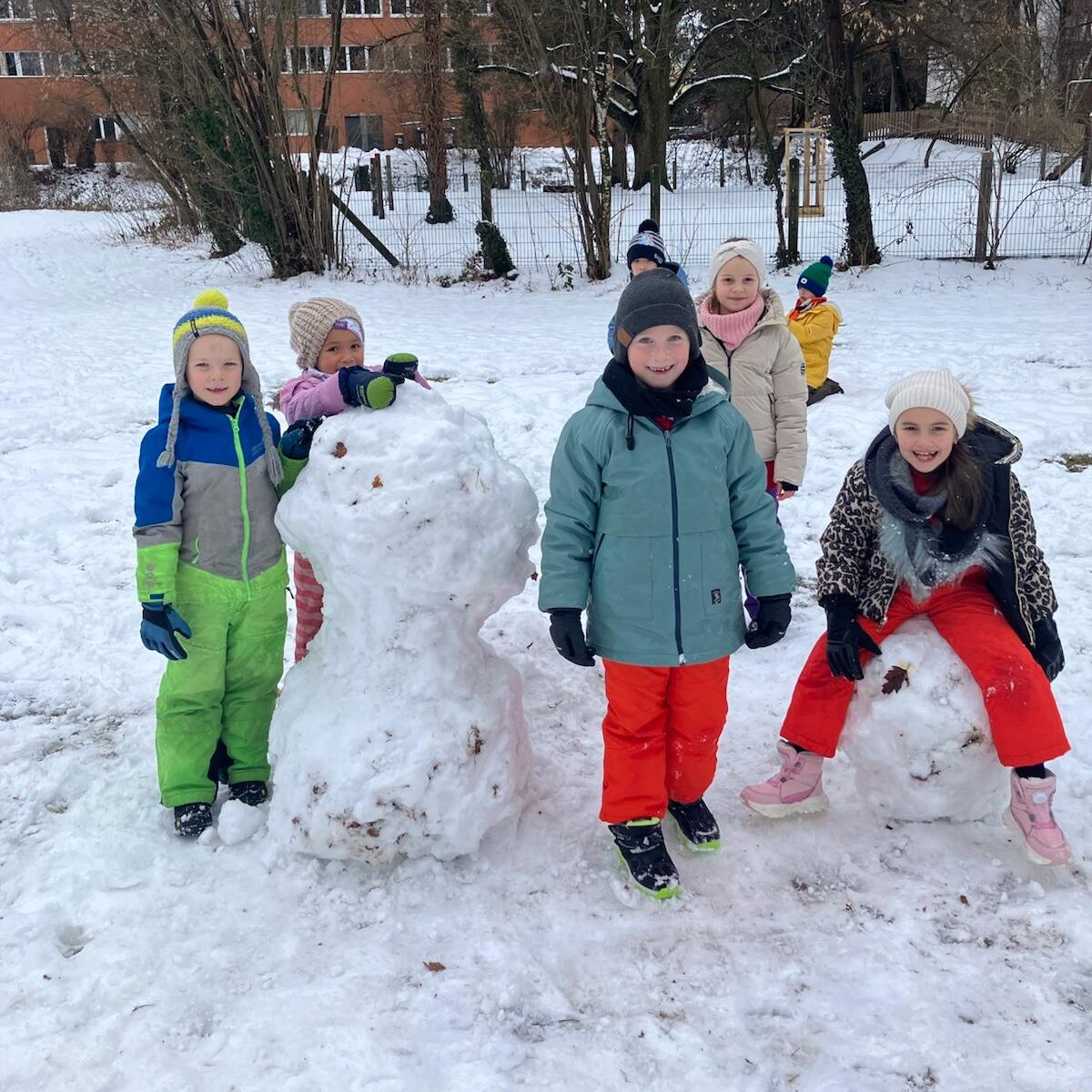 Im Jänner hatten wir das Glück, auch in der Stadt jede Menge Schnee zu erleben. Die Kinder der 1. Klasse hatten großen Spaß beim Schneemännerbauen und beim ausgelassenen Herumtollen im Schnee.