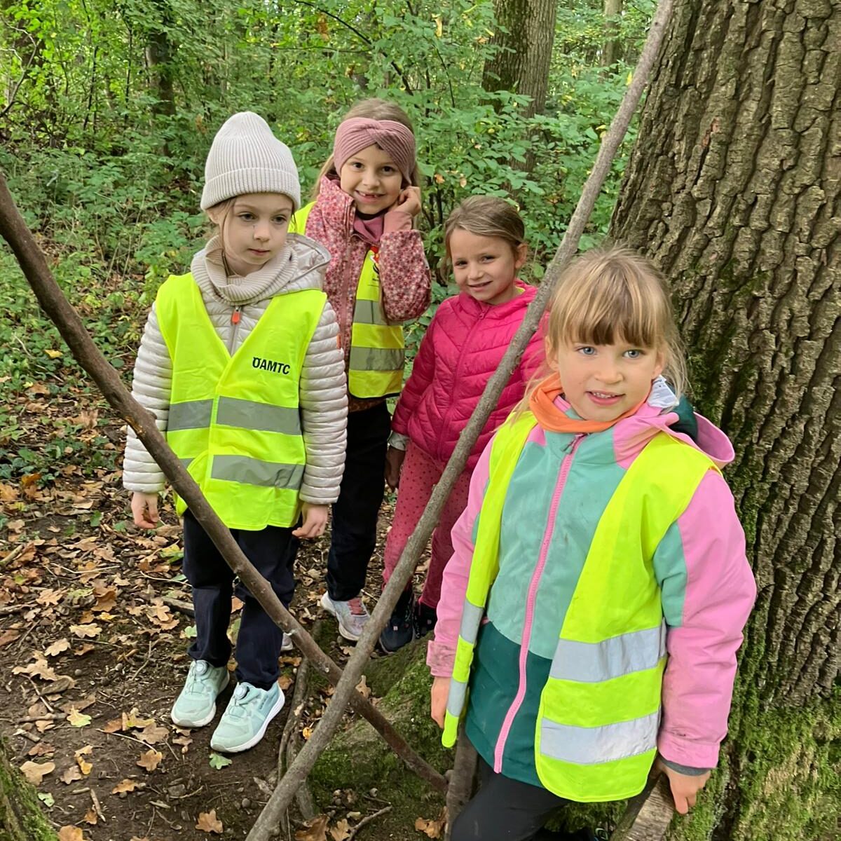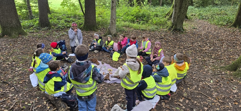 Für die Kinder der 1. Klasse findet der Unterricht einmal in der Woche im Wald statt. Der Wald ein wunderbarer Lernort, um Inhalte auf ganz andere Art und Weise zu verinnerlichen. So werden dort Themen aus den Bereichen Deutsch und Mathematik, aber auch Kreatives und viel Bewegung, angeboten. Die Kinder sind begeistert von den Entdeckungen, die uns die Natur bietet.